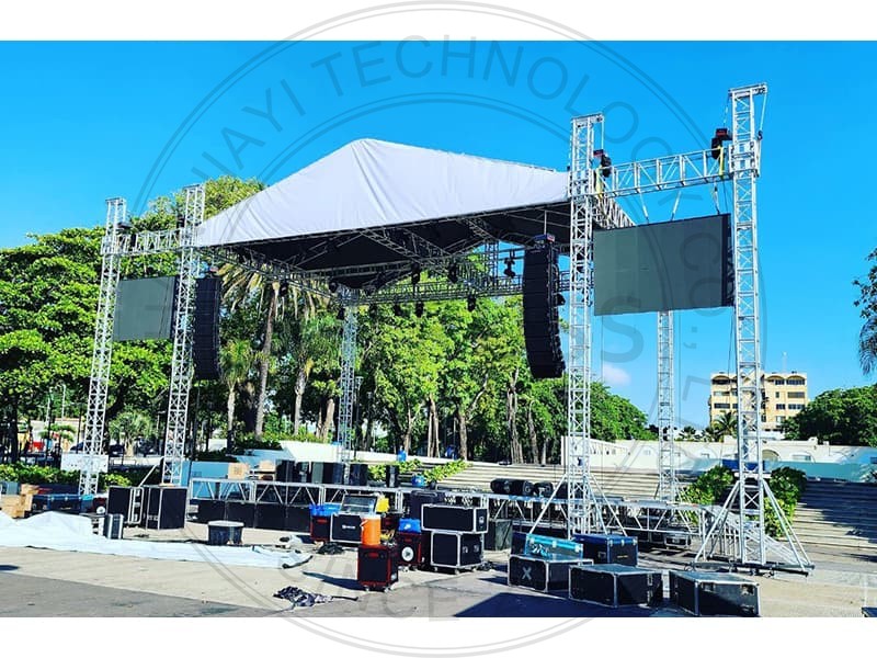 13*11*9m Stage Trusses System can be used in a variety of high-traffic areas such as stage theatres, concerts, performing arts, or trade shows, arenas, and stadiums where stage performances are required. In short, Stage Trusses can help to create a better performance on stage.
