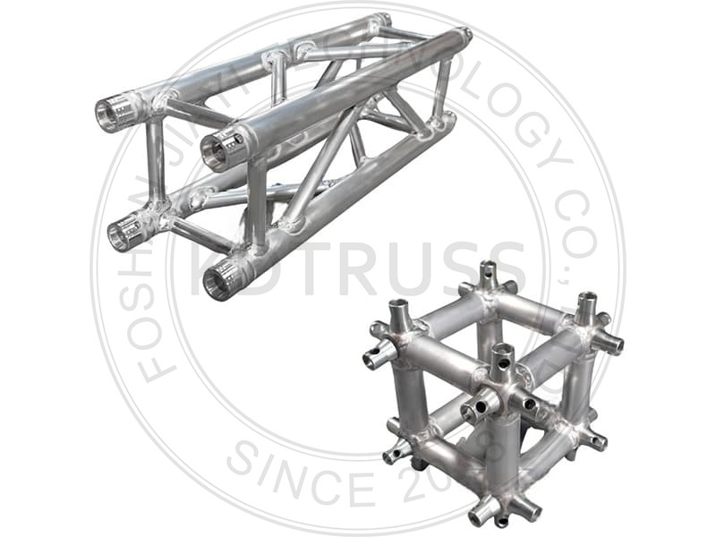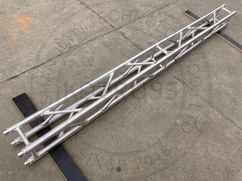 Jiayi is a professional truss manufacturer with more than 10 years experience. We can offer 100*100mm, 200*200mm and 290*290mm square box truss for exhibition. Bending stress resistand span is 10m, Max. loading capacity is 180kg.