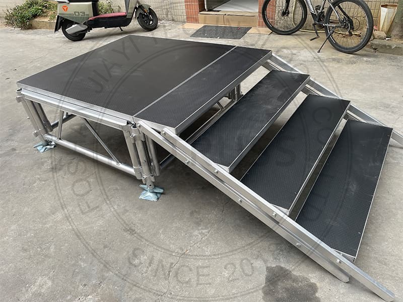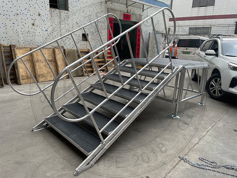The Portable Stage Stairs with adjustable height are convenient for various events and performances where the stage height may vary or need to be adjusted.