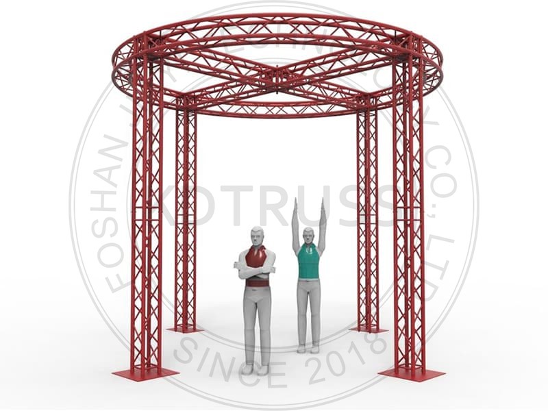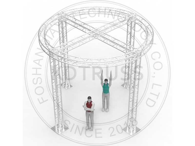 3m diameter Lighting Circle Truss as beam and 4 pieces 2m Box Straight Truss as pillars connected by 6-way Corner Blocks.