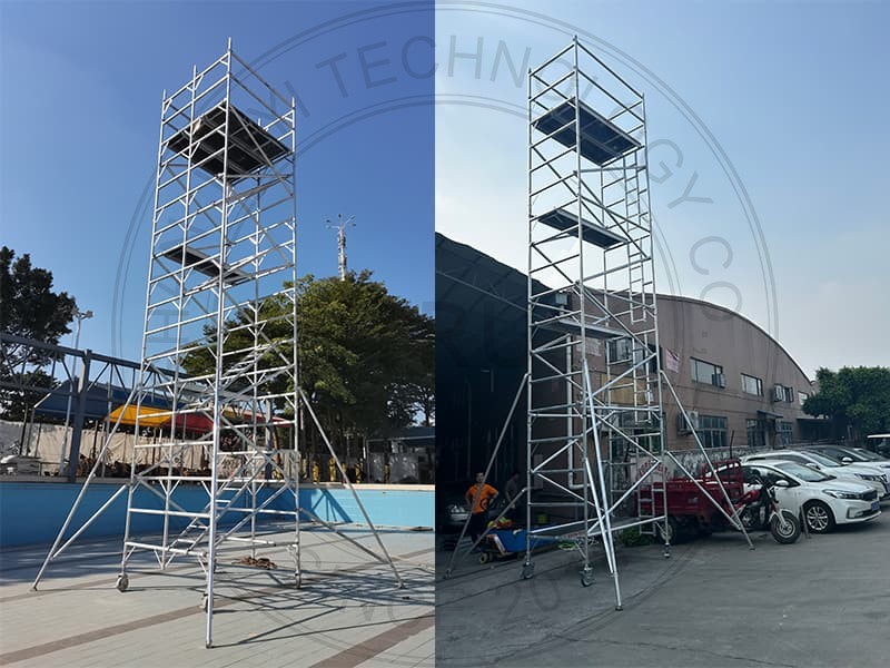 1. Excellent Portability: Aluminum scaffolding weighs only one-third as much as traditional scaffolding, allowing one person to easily carry and handle it.This reduces labor costs and physical exertion while improving assembly efficiency.