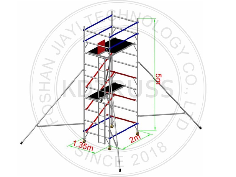 The Aluminum Ladder Scaffolding set is lightweight, portable, and designed for high strength performance. It features excellent corrosion resistance, ensuring stability in outdoor and chemical environments, while its modular and foldable design allows easy transportation and storage. The Aluminum Frame Scaffolding requires low maintenance costs due to its durable oxidation layer and is highly recyclable, minimizing environmental impact.