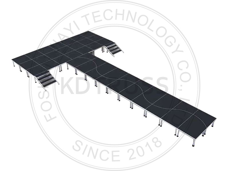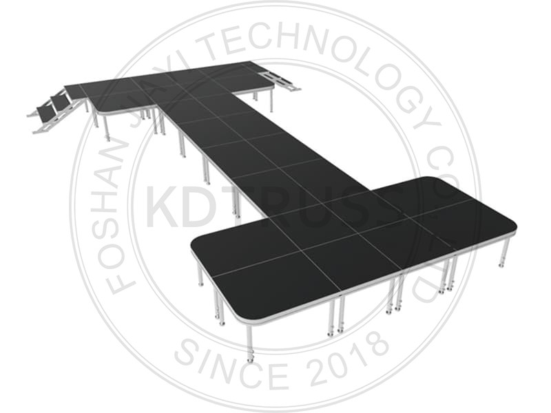 Ladder Shape frame make the stage legs much stabler and firmer. The stage height can reach 2m high. Fixing the adjustable height by pins and holes ensures the telescopic legs much safer.