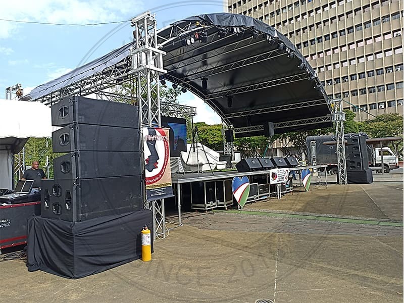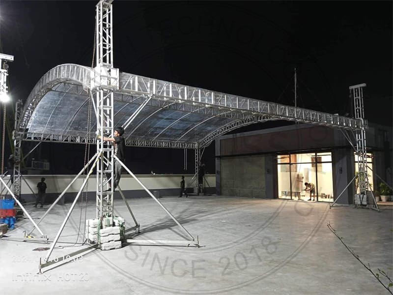 Boost your event production with our Aluminum Alloy Arc Roof Truss System. Featuring a 7m height and dedicated 2m speaker wings, this durable, mobile stage assembly is perfect for outdoor concerts and professional festivals.