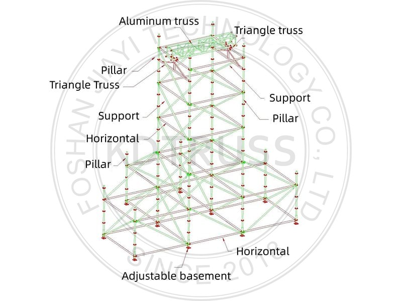 Layer Truss mainly consist of Horizontal Layher Truss, Vertical Layher Truss, Diagonal Layher Truss, Adjustable Base, Joint pipe. Its construction is simple and stable.